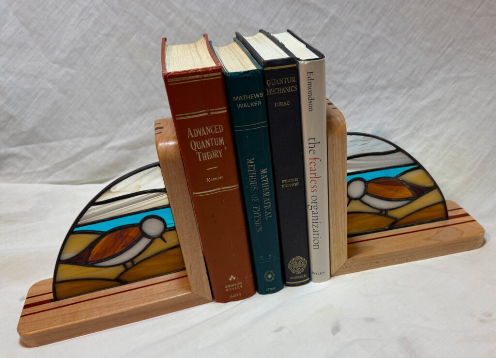 These Plovers are paired with Maple and Padauk wood accents, bringing together elements of glass and wood to enhance any bookshelf in which they’re displayed.