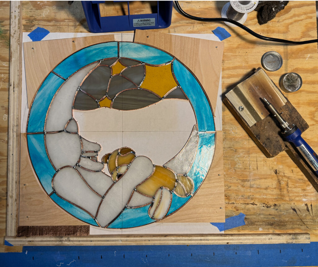 And to that, I added a “light box”, bringing in a bit of backlighting when the piece can’t be hung in a window.