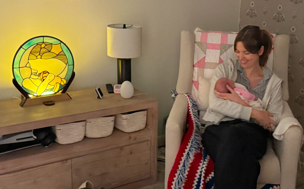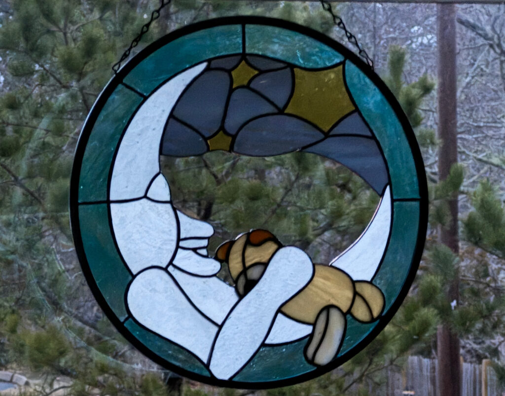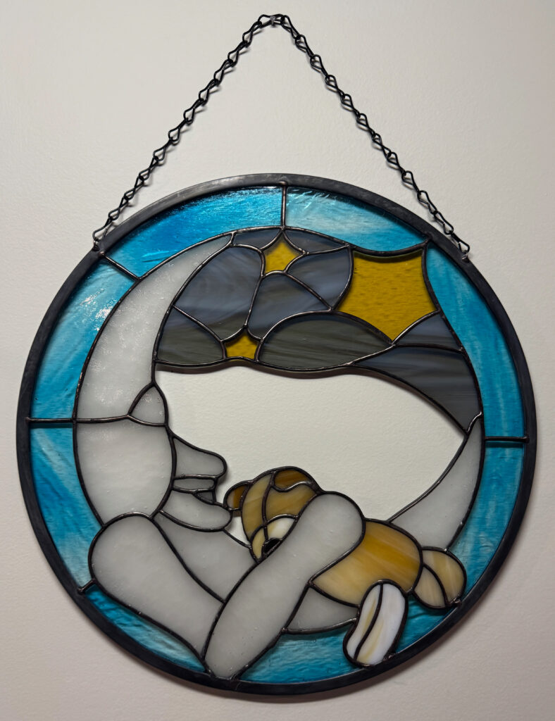 Besides the subject and the thoughts and dreams of swaddled babies brings, I love the way the moon’s glass picks up different lights. It’s a frosted hue, naturally glowing with minimal backlighting, clearly seen in the photo below.